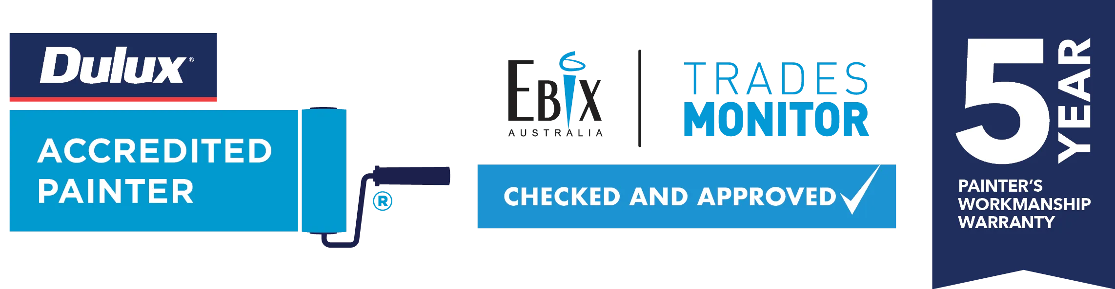 We are fully licensed and professional painters, certified and trusted by Dulux as a Dulux Accredited Painter. We have our own $20M public liability insurance and are independently verified annually by Ebix Trades Monitor. We offer our own 5 Year Painter’s Workmanship Warranty on all our residential paint projects